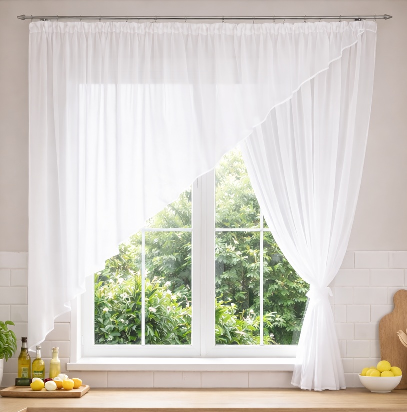 Ascona: o perdea din văl alb, cusută pe o bandă încrețită (o putem coase în culori la cerere). Legat de garnitura din atlas. Puteți alege din aproape 100 de garnituri. Culoarea garniturii trebuie să fie introdusă în câmpul de comentarii atunci când comandați.